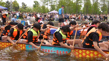 赛场之上,青春力量成为最亮眼的风景。近半数参赛队伍由大学生组成,他们眼神坚定,动作有力,响亮的号子声与岸边观众的欢呼呐喊交织在一起,奏响了一曲青春激昂的乐章。