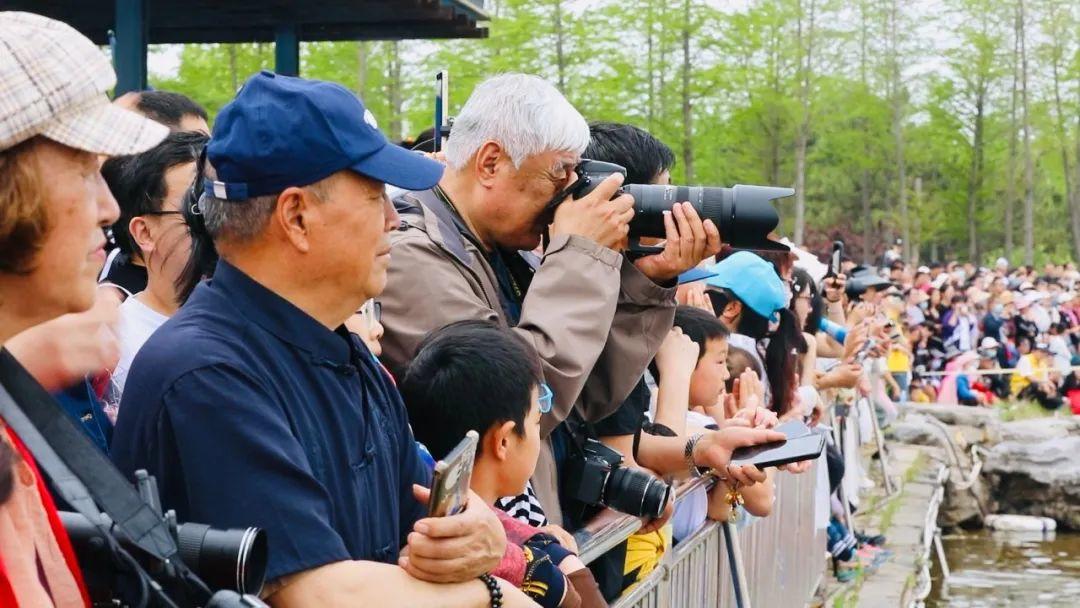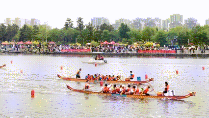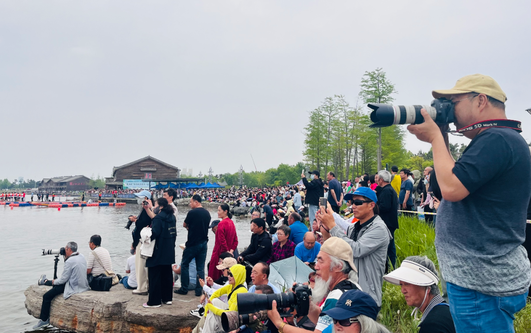 一大早,蓝湖公园岸边便已人头攒动,观众们满怀期待,早早占位,只为见证龙舟竞渡的精彩时刻。9时许,发令枪响,龙舟如离弦之箭飞驰而出,健儿们齐声呐喊,整齐划一地挥动船桨,船桨入水、扬起,带起串串晶莹水花,在水面上划出一道道白色水痕。