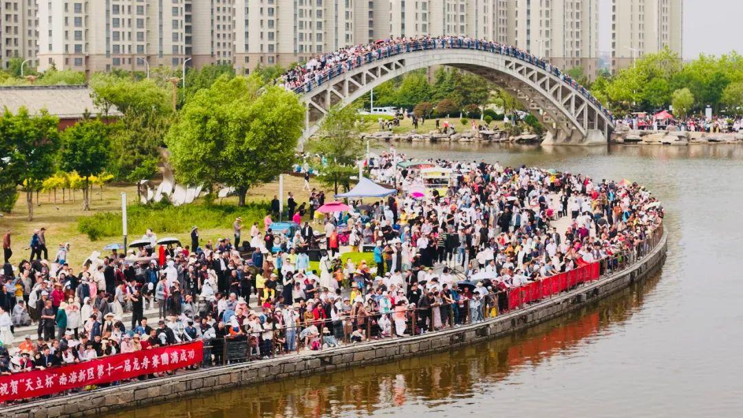 赛龙舟作为一项历史悠久的传统体育运动,深受群众喜爱。自2015年起,南海新区充分利用自然资源,连续11年举办龙舟赛,赛事影响力逐年提升,已然成为极具代表性的文化体育名片。每逢赛事举办,五湖四海的观众汇聚于此,每当龙舟飞驰而过,加油助威声便响彻云霄,现场氛围热烈非凡。游客云希光感慨:“这氛围太热烈了,传统节日就该这么热闹。这场龙舟赛让我深刻感受到中华文化的内涵,也领略到南海的青春活力。”