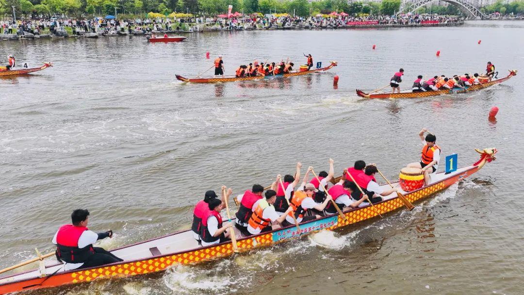 5月31日,端午佳节,南海新区蓝湖公园热闹非凡,2025威海市“我们的节日·端午”主题文化活动“天立杯”南海新区第十一届龙舟赛在此激情开赛,14支参赛队伍在碧波之上展开激烈角逐,为现场观众带来一场速度与激情的视觉盛宴。