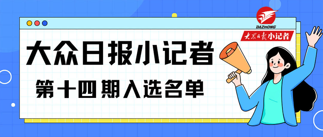 大众日报小记者团自2023年8月份成立以来,得到全省青少年及家长的热切关注和积极参与,先后组织线上线下小记者活动数十次,线上征集好作品、线下采风多实践,青少年在“行走”中增长见识,取得进步。大众日报小记者团已成为助力青少年成长成才的重要平台。目前,大众日报小记者招募报名仍持续进行。近日,又有一批大众日报小记者通过考核,成为大众日报小记者第十四期成员。现将名单公布如下: