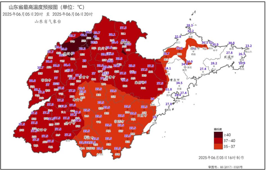 高温橙色预警:山东9市局部可达40℃