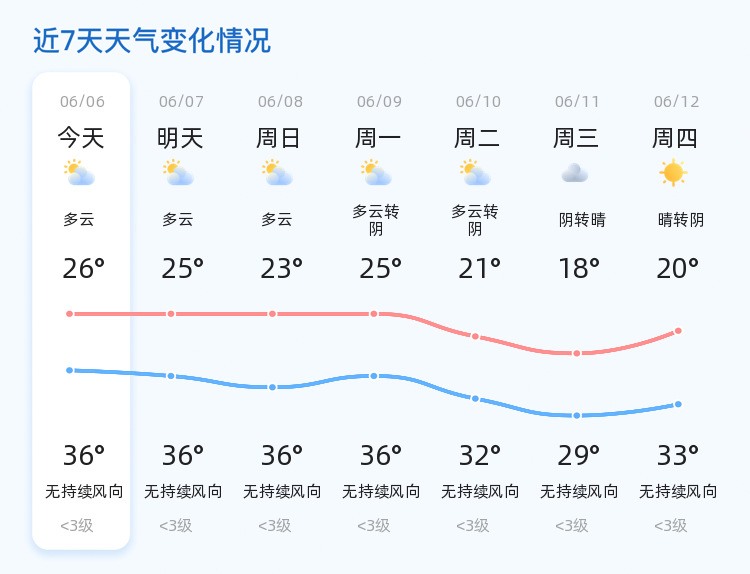 已为您整理了未来7天天气预报,请继续留意未来天气变化,注意出行安全。