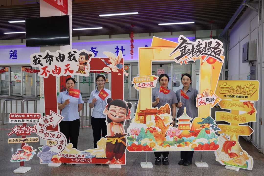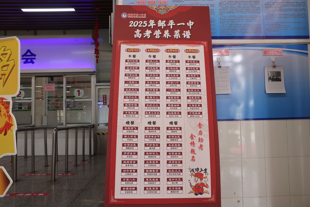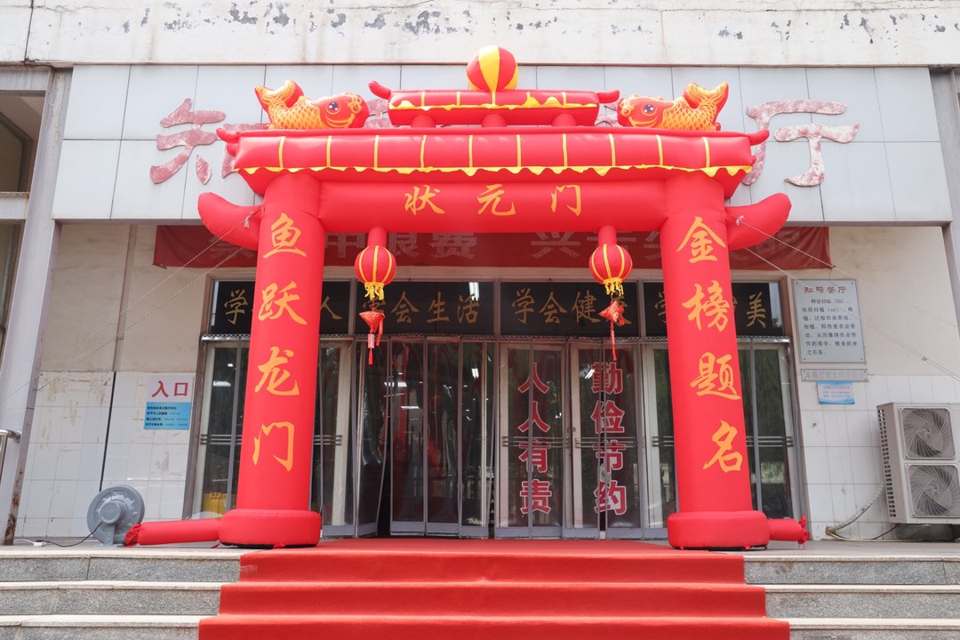 在邹平一中餐厅内,一条鲜红的地毯从门口延伸至取餐区,两侧墙面上“状元门”在阳光下熠熠生辉。这场精心策划的“沉浸式励志体验”,为即将踏入高考考场的学子注入温暖力量。