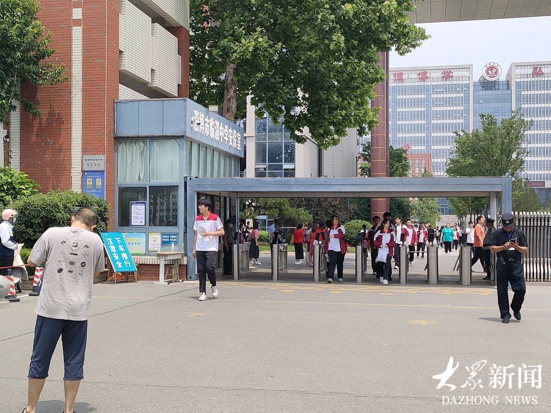 6月7日上午,高考语文考试结束后,考生走出临淄中学考点。