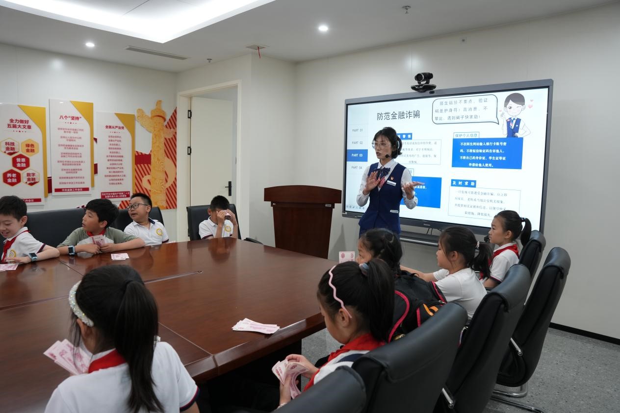 随后,在银行工作人员的引领下,小同学们又移步至支行二楼会议室,共同正式开启了“金融课堂”。