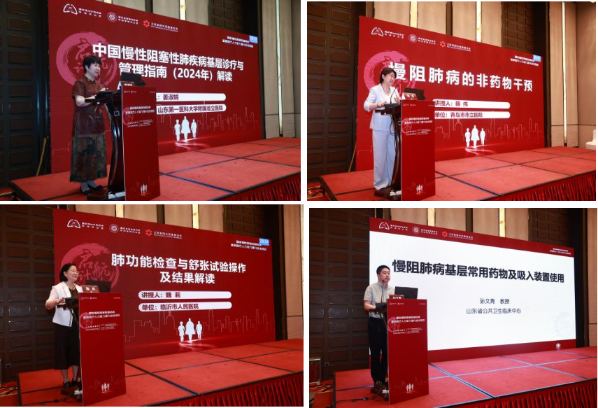 启动仪式结束后,培训环节根据国家基层慢阻肺病防治办部署及要求,由杨汀教授解读了《慢阻肺病患者健康服务规范(试行)》,姜淑娟教授解读了《中国慢性阻塞性肺疾病基层诊疗与管理指南(2024年)》,韩伟教授分享了《慢阻肺病非药物治疗》,魏莉教授分享了《肺功能检查与舒张试验操作及结果解读》,孙文青主任分享《慢阻肺病基层常用药物及吸入装置使用》,各位专家结合自身经验及临床案例,用通俗易懂的语言,从多个层面对省级师资及基层医务人员代表进行了综合培训指导。