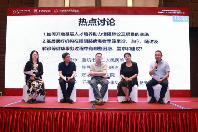 此外,会议还设置了讨论环节,由菏泽市立医院曹雪如主任主持,来自潍坊市第二人民医院的张绍坤主任、胜利油田中心医院的张建主任、济南市中心医院的李冠华主任及千佛山办事处社区卫生服务中心的李利华主任,结合自身临床工作实际,就基层慢阻肺病的现状展开了深入交流讨论。