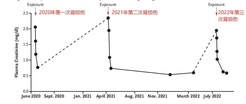 不仅仅是肾不好的人,即使健康的正常人也会在直发出现肾损伤。2024年,《新英格兰医学杂志》上刊发了一个病例研究:这是一位26岁的身体健康女孩,她在2020年6月、2021年4月和2022年7月,两年时间3次出现因呕吐、腹泻、发热和背痛等就医,都被医生诊断为急性肾损伤。②