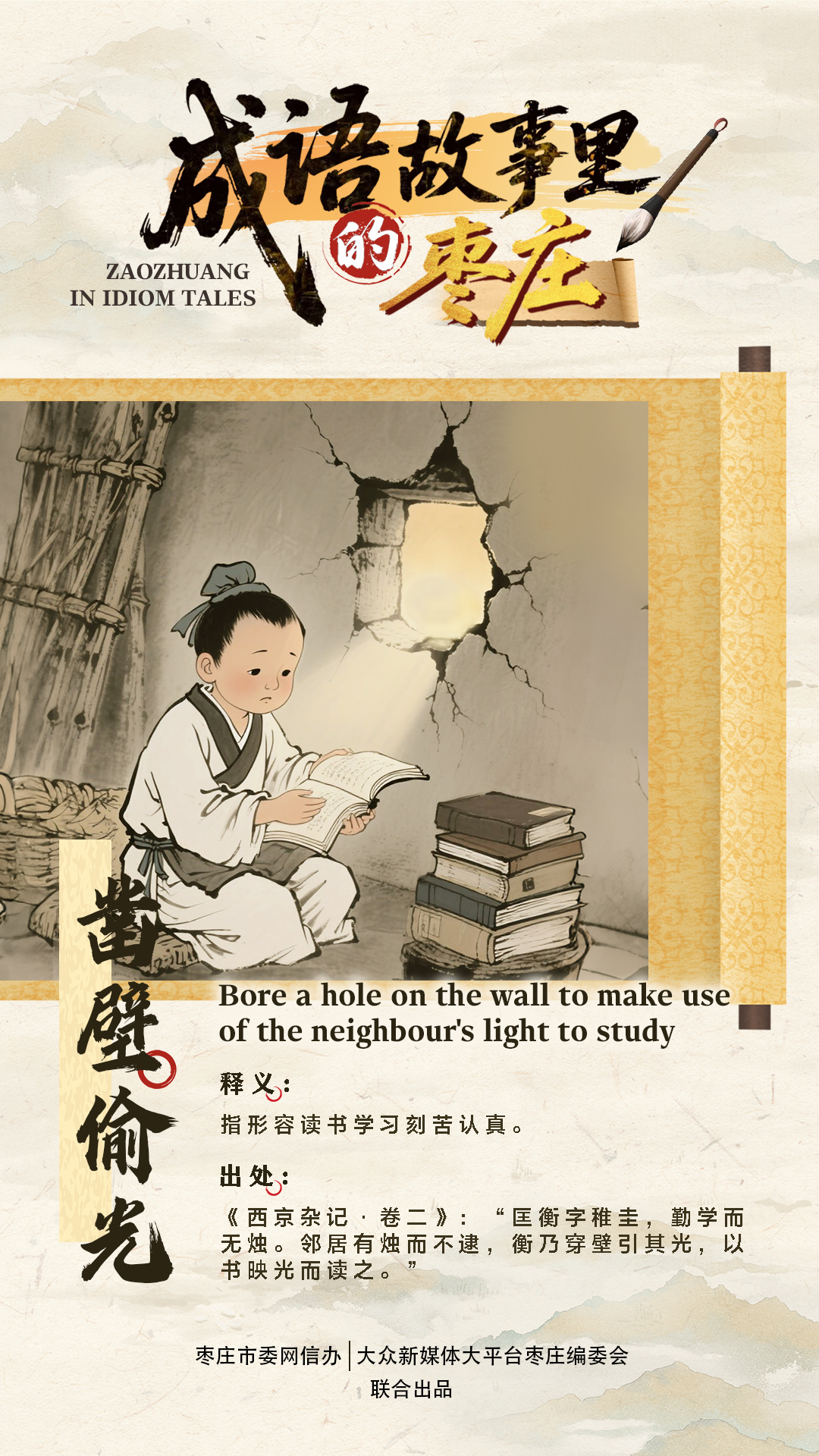 成语故事里的枣庄|①凿壁偷光 Bore a hole on the wall to make use of the neighbour's light to study