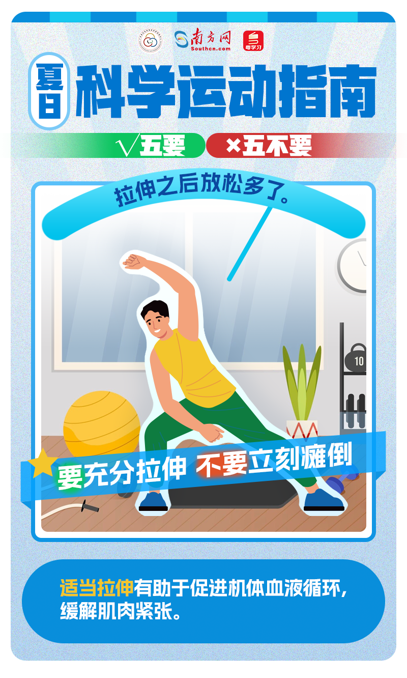 很多人在运动结束之后,会因为太累而立刻休息,并不重视运动之后的整理和拉伸。其实运动后的拉伸也是运动的一部分,适当拉伸可以促进机体血液循环,缓解肌肉紧张,同时促进肌肉放松及恢复,避免运动损伤。