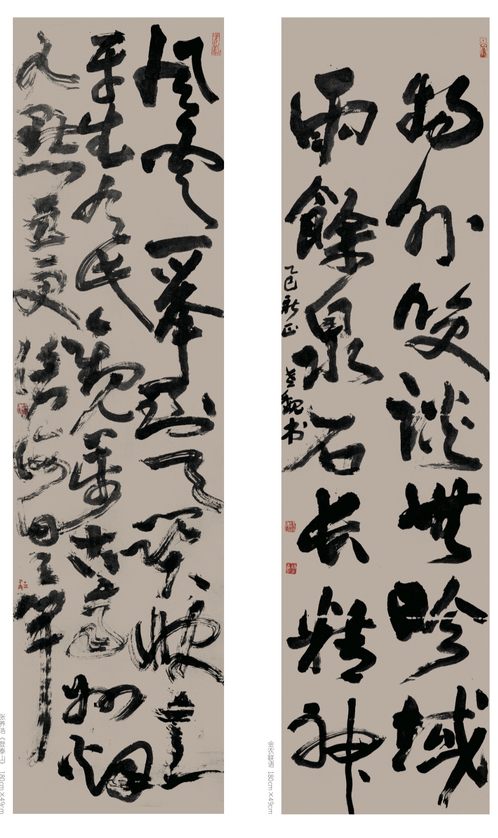 可以说,这些作品与国展等主流展览完全不一样——率性、洒脱,甚至有一些作品简直堪称为“肆意妄为”,比如个别行草作品。其“宁丑勿美”的散漫形态,注定会被一些大众读者斥为“瞎写”。但专业观者则纷纷称其若有不可言之大美。一群充满探索精神的书家,以充满个性的书写展现着自我的艺术理想。