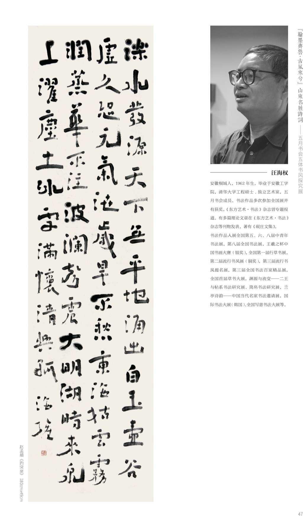 “五月书会”是始于枣庄的一个沙龙组织,其创始成员均为枣庄人。因枣庄石榴盛名于外,便择石榴的花期“五月”为名。后引入汪海权、魏全钦、老五三位艺术家,如今计有16人。迄今20年来,他们以书法为媒,彼此分享、互相影响,虽非正式社团组织,但艺术之名已然扬于业内。