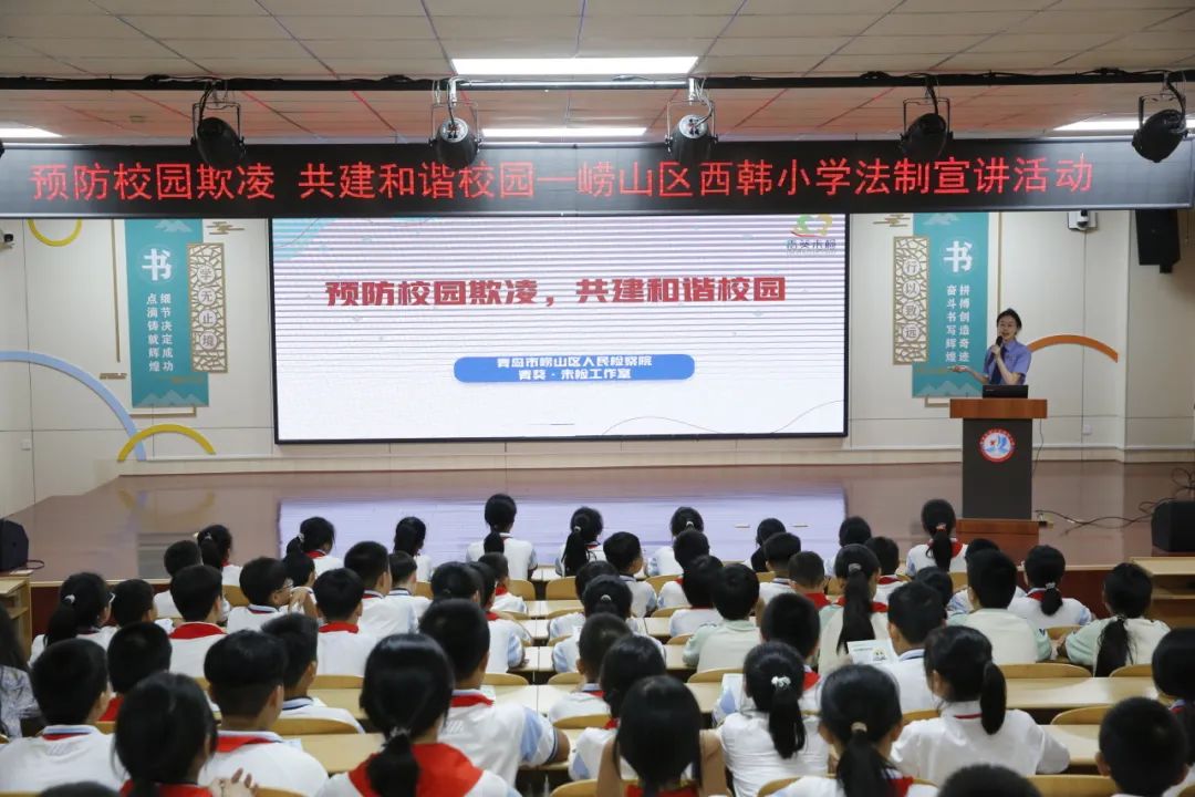 为进一步增强青少年的法治意识和自我保护能力,近日,青岛市崂山区人民检察院“青葵·未检”团队的检察官们走进崂山七中和崂山区西韩小学,开展了一系列精彩纷呈的预防校园欺凌和远离毒品主题讲座。