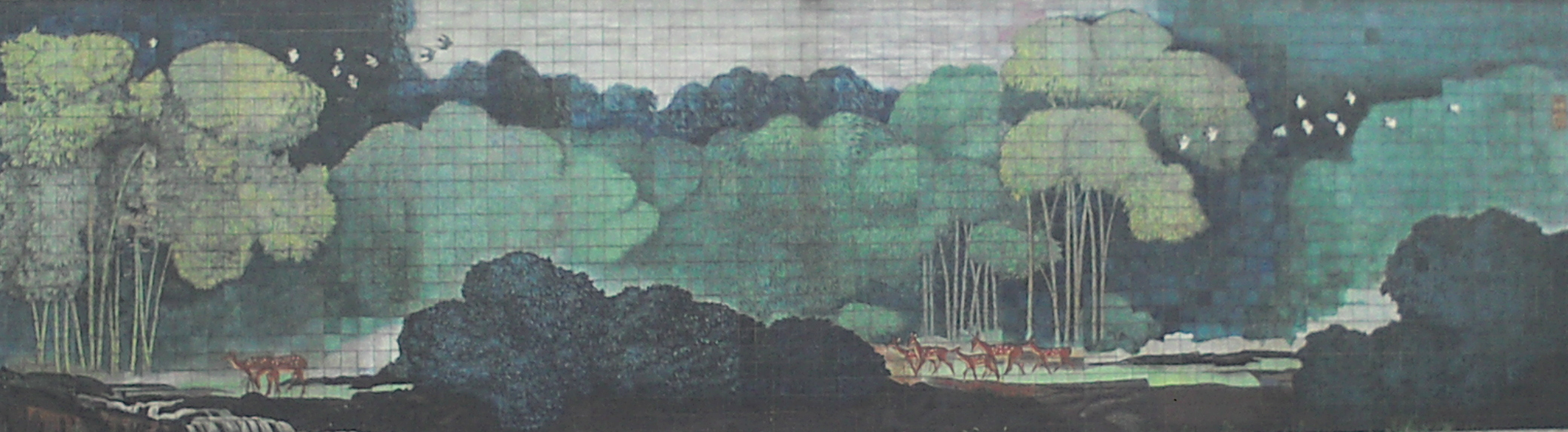 这也是朱一圭带领团队制作的、有史以来最大的一幅立粉工艺的壁画。赵锦星记得,这幅壁画难度最大的地方在于最初绘制画面的过程中,首先要面对的是立粉连续性的问题——由于壁画是一块一块20厘米见方的瓷砖拼接起来的,瓷砖之间的连接处“立粉”容易发生断裂、衔接不好,会影响壁画的整体效果。