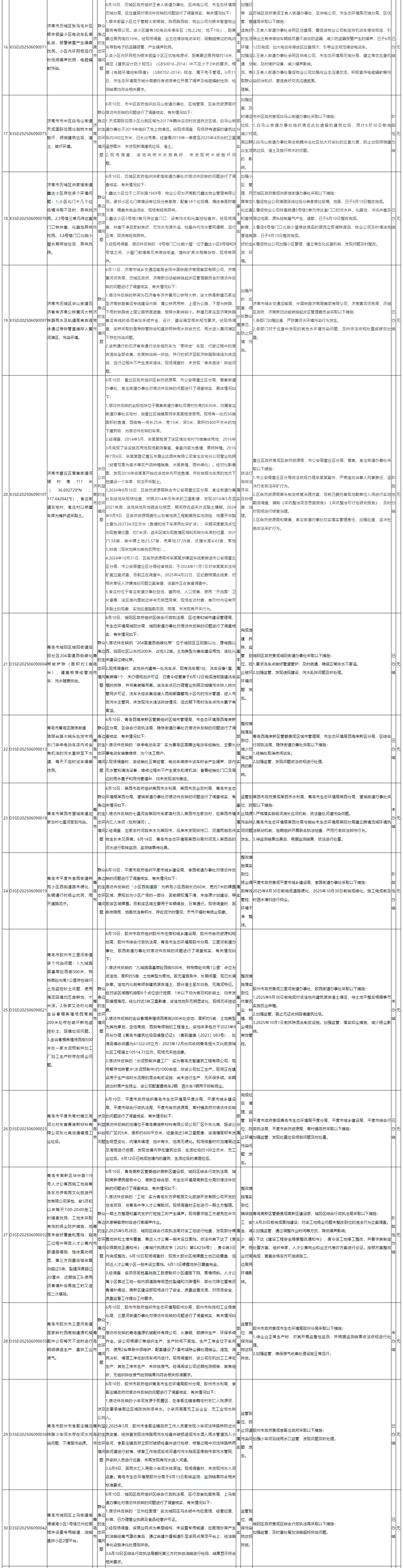 中央生态环境保护督察群众信访举报交办和边督边改公开情况一览表