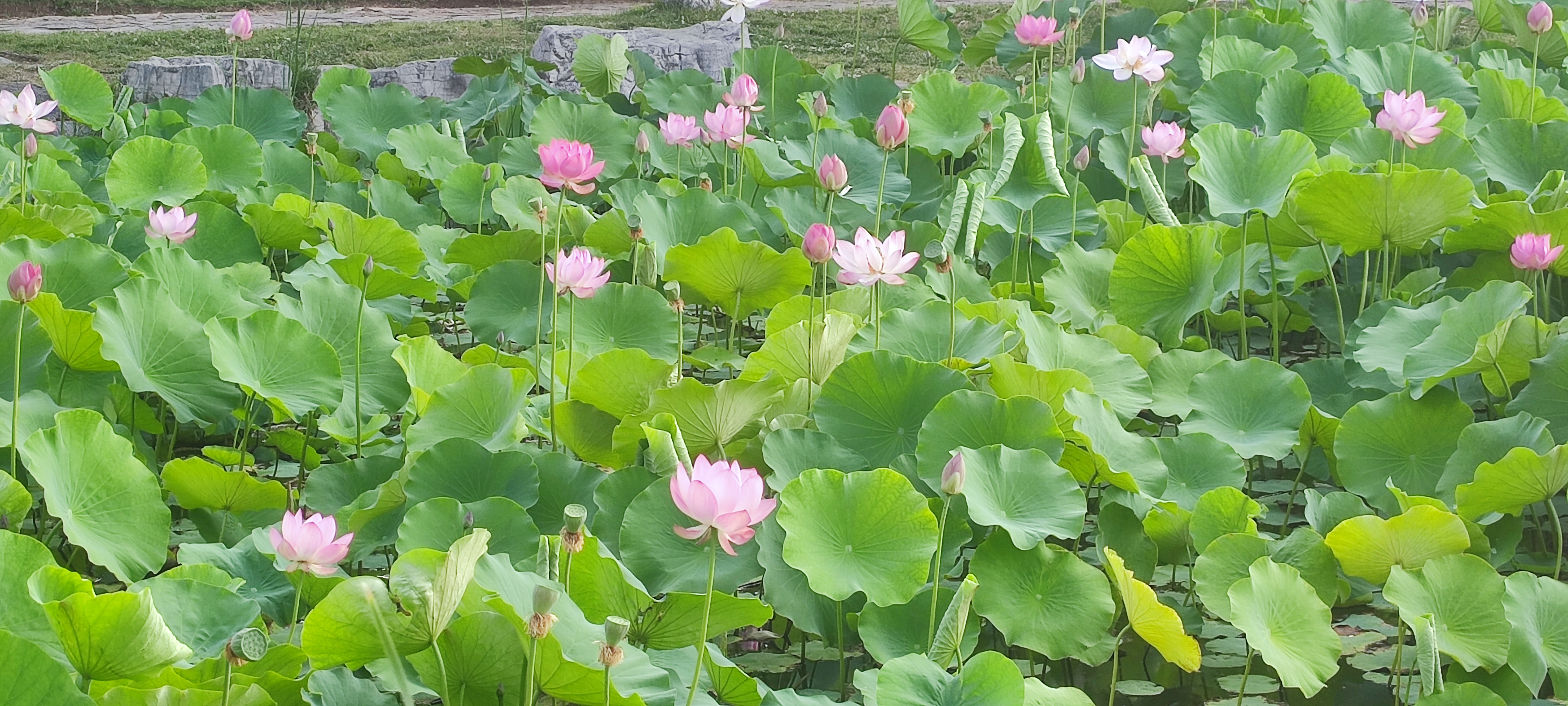 济南市莱芜区红石公园荷花盛开迎夏。