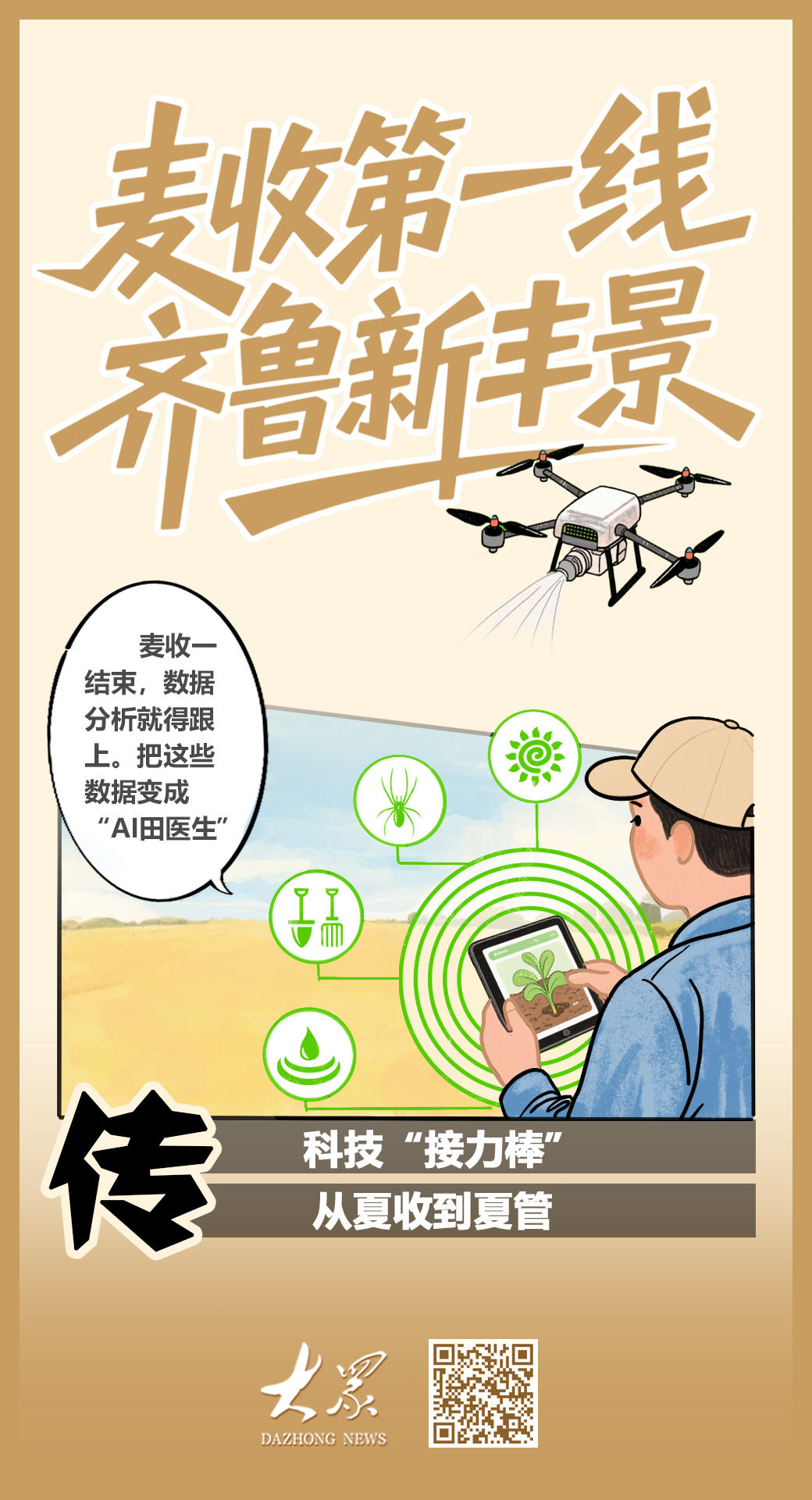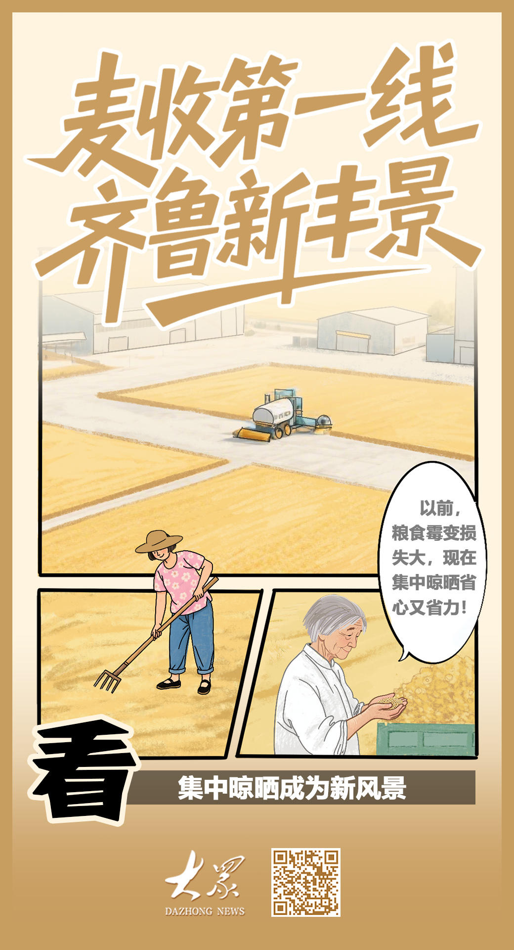 连日来,大众日报·大众新闻记者深入麦收第一线,捕捉齐鲁大地这最动人的丰收季。在系列鲜活文字报道的基础上,大众新闻客户端推出“麦收第一线 齐鲁新‘丰’景”手绘故事海报,邀您一道沉浸式感受这片金黄画卷中蕴藏的服务温度、科技力度与惠民深度。