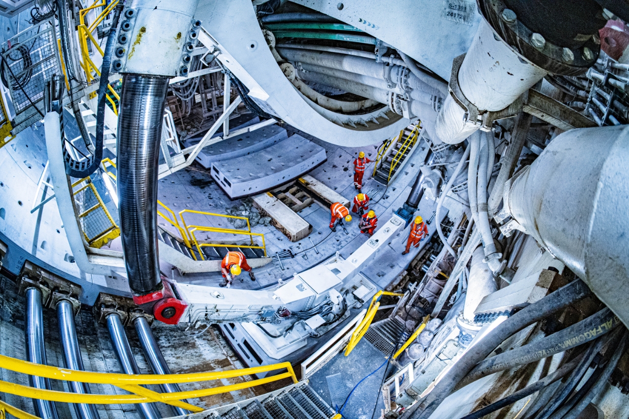 据悉,“山河号”盾构机进入黄河南岸大堤前覆土深度为37米,进入大堤后覆土深度增大至44米,对刀盘切口压力控制要求极高,维持掌子面稳定难度大。在穿越黄河南岸大堤前,项目团队对“山河号”盾构机密封保压系统、泥水环流系统、同步注浆系统等全部进行检修保养,确保其以最佳状态迎接挑战。同时,建立地面、地底垂直联动监测机制,实时监控地表沉降。