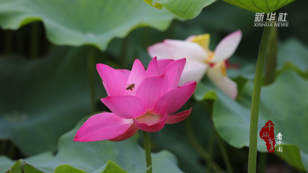 夏日时节,山东省枣庄市市中区东湖公园的荷花竞相绽放。碧绿的荷叶层层叠叠,托举起朵朵粉色荷花,或含苞待放,或嫣然盛开。微风拂过,荷花淡雅的清香弥漫在空气中,为城市增添了夏日的浪漫,吸引了众多市民和游客前来赏荷、拍照。