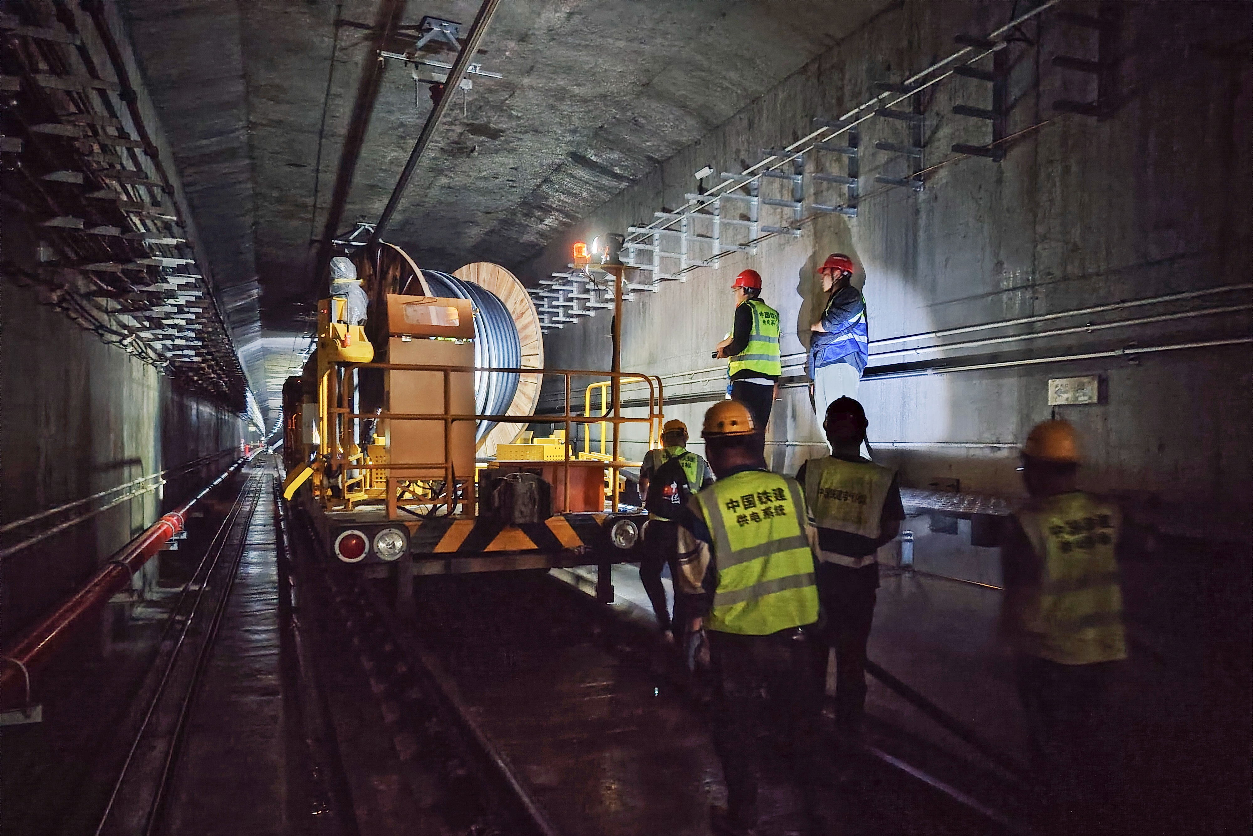 面对全线33座车站建设进度不均衡的挑战,4号线项目部制定四阶段动车调试方案,通过动态统筹施工节奏,确保工程高效推进。在电缆敷设环节,项目团队联合铁建电气化局自主研发“三缆同敷”自动化技术,首次实现3盘电力电缆同步智能化铺设。尤其在雪山站至田家庄站区间,团队创下1小时敷设4.2公里的行业纪录,为全线电通提供有力保障。
