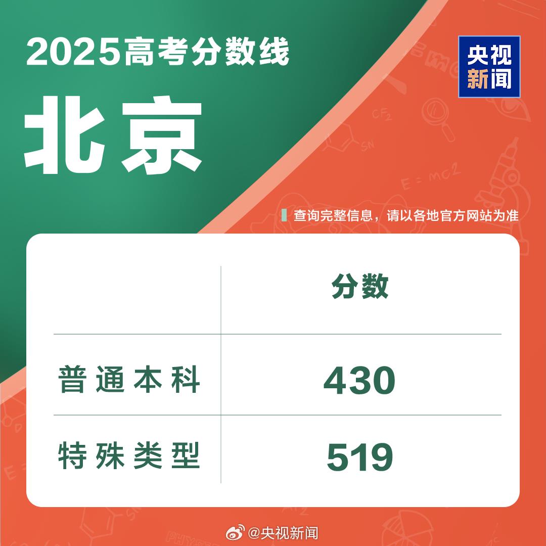 今天(6月25日),北京市2025年普通高校招生录取控制分数线公布,具体如下: