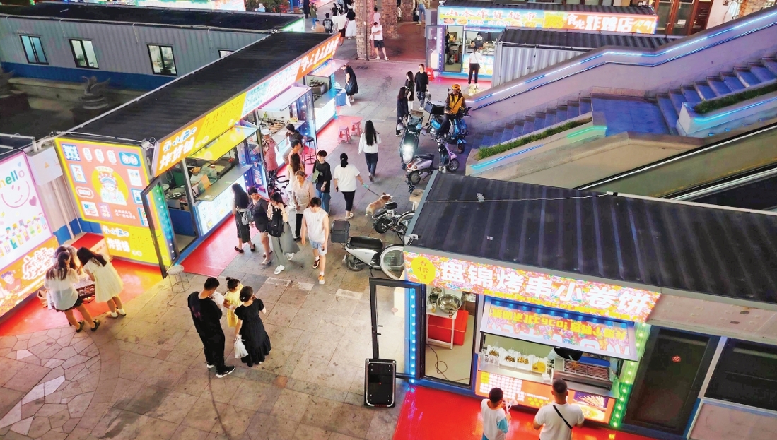 鑫都汇美食街位于鑫都汇府小区北侧、青岛黄海学院南门,建筑面积2.6万平方米,经营业态包括餐饮酒吧、特色小吃等。夜幕下的美食街摊位林立,商品琳琅满目,其中还有不少极具灵山卫地方特色的文创产品,吸引了众多附近居民及高校师生前来打卡。