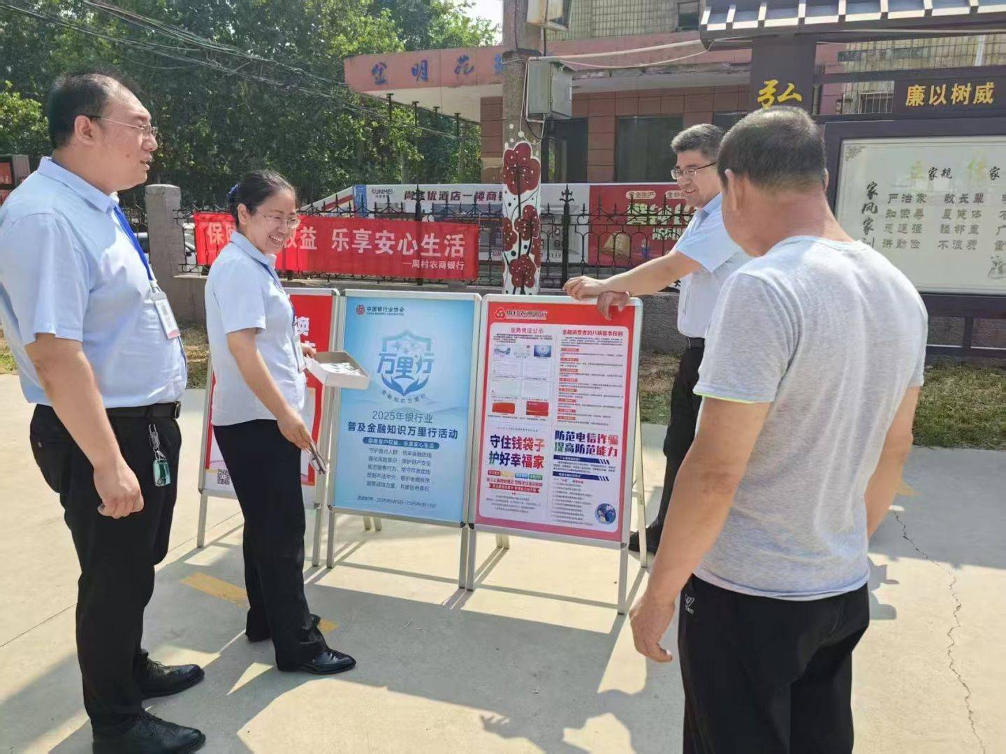 为全面提高消费者金融知识水平和金融风险防范意识,周村农商银行在6月份全面开展了“金融知识万里行”系列活动。18家支行携手街道、社区、村委,通过印制宣传海报、举办金融夜校、发放宣传页等方式,向金融消费者现场普及金融知识,提升风险防范能力,以实际行动践行消费者权益保护的理念。