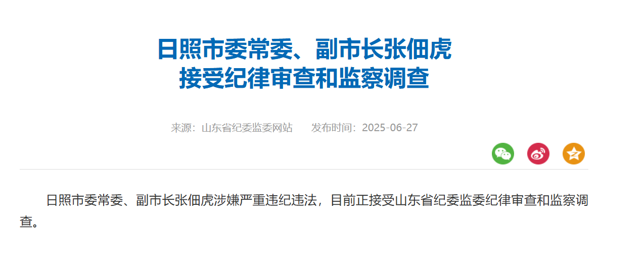 日照市委常委副市长张佃虎涉嫌严重违纪违法目前正接受山东省纪委监委纪律审查和监察调查