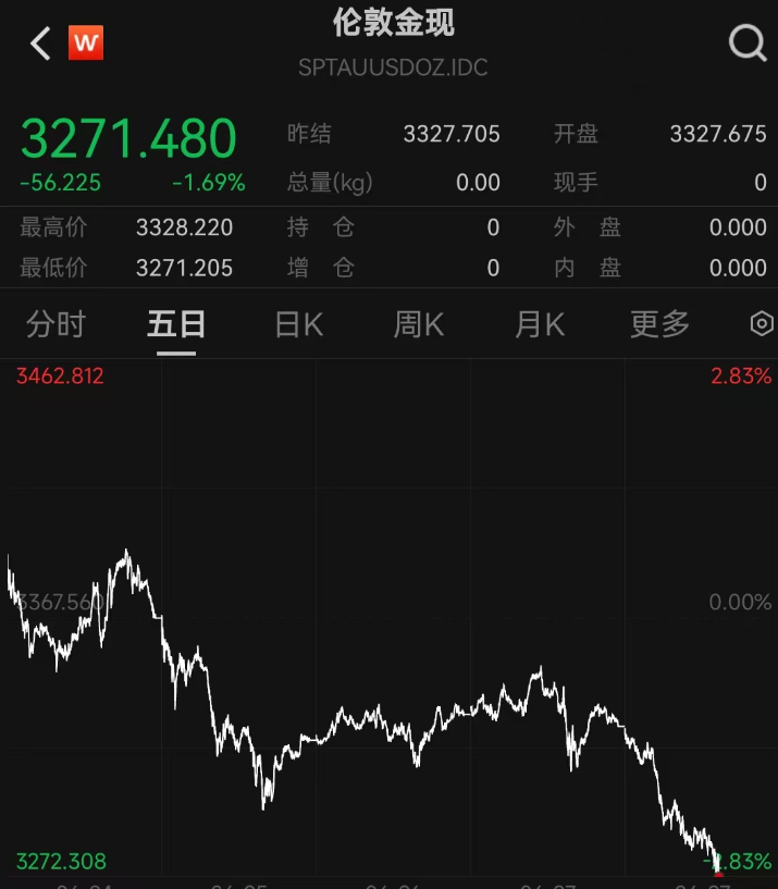 6月27日晚间,国际贵金属突然猛烈跳水!