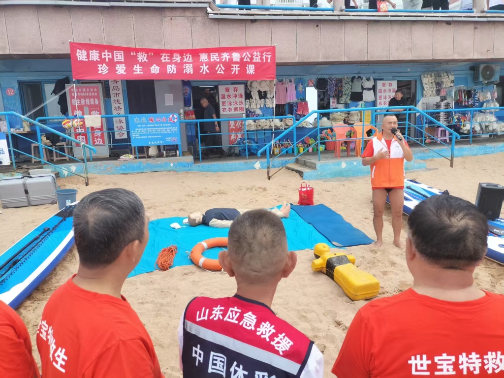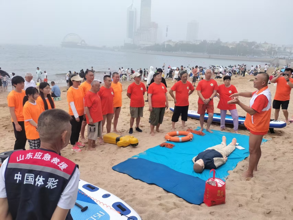 在活动现场,青岛市救生协会救生救援总队总队长时效杰详细讲解了心肺复苏、海姆立克急救法、抛绳和抛救生圈施救岸边溺水者等救援知识,同时现场组织了划桨板营救落水者的讲解与实操。据了解,此次珍爱生命防溺水公开课是为迎接岛城夏季旅游旺季,做好防溺水保平安救生救援宣传教育普及,同时推广健康快乐游泳。活动还邀请山东省救生协会会长王超、青岛市救生协会会长祝焕庆现场调度指导,每一个演练项目高效、标准完成。