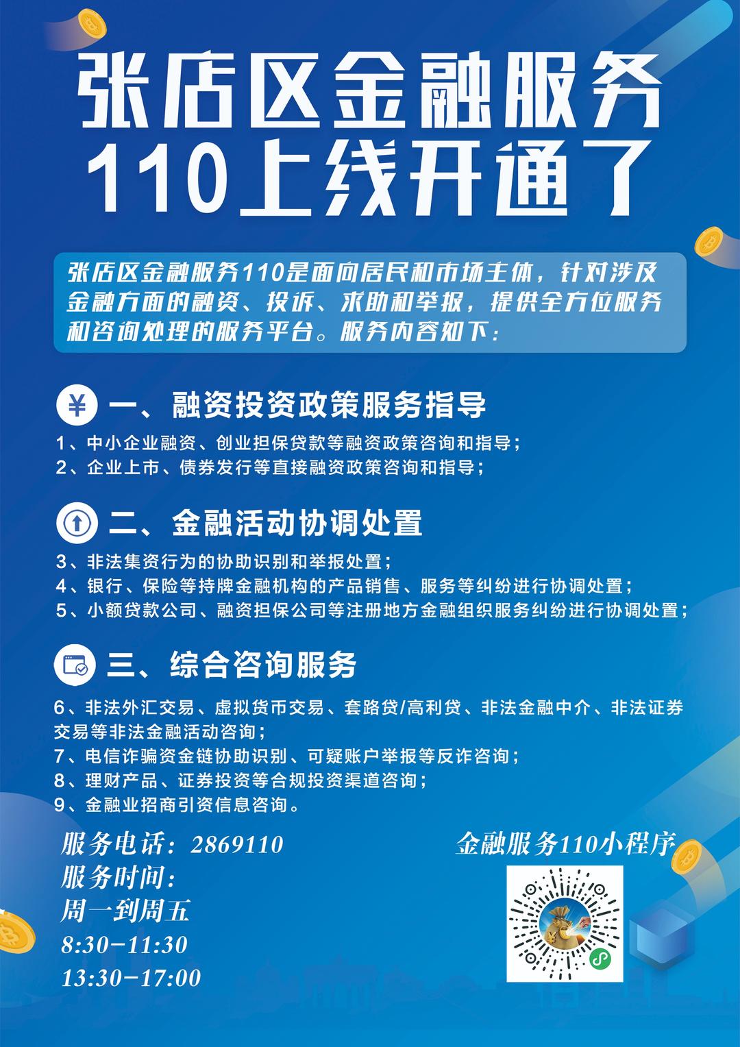 张店区金融服务110上线开通了