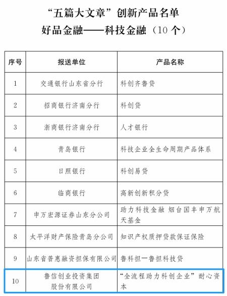 鲁信创投入选2025“好品金融”典型案例和产品名单