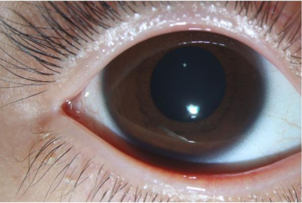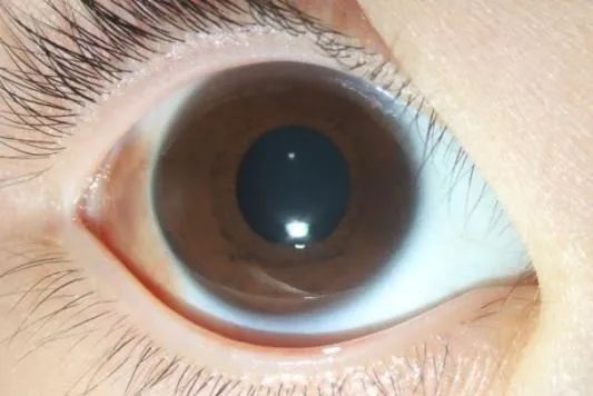 直到有一天,在阳光下仔细观察孩子的双眼时,她心里“咯噔”了一下:童童左眼的“白眼球”(巩膜)靠近黑眼珠(角膜)边缘的地方,竟然出现了一小块明显的黄色区域!