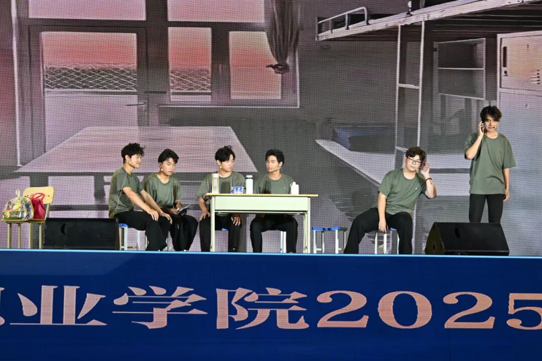随着舞台的灯光渐次亮起,一场专属于2025届毕业生的视听盛宴蓄势待发。晚会以“离别定格・时光倒流”序章开启,涵盖初见、奋进、惜别等篇章,通过舞剧、朗诵、歌曲串烧、情景剧等多元形式,串联起学子们三年的校园回忆。从入学军训时的青涩,到逐梦职场的憧憬、青春成长的倾诉,再到惜别时的不舍,为毕业生们打造了一场难忘的告别仪式,传递着青春的力量与美好期许。
