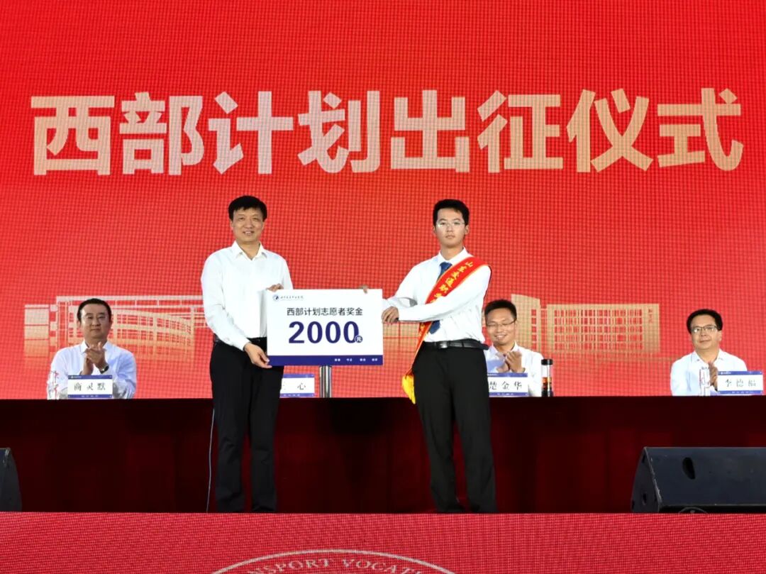 王心为学校西部计划志愿者,公路与建筑系李庆泰同学佩戴出征绶带,鼓励他“在西部热土展现交职人风采”。这抹西行的身影,恰似一枚青春的邮戳,盖在祖国版图的西部留白处,让“到祖国最需要的地方去”的誓言有了具象的模样。