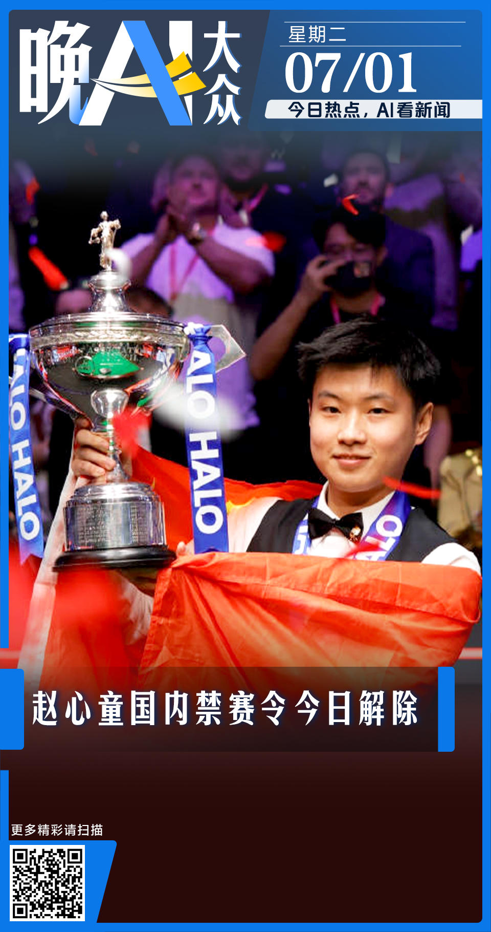 7月1日,赵心童的国内禁赛期正式结束,这意味着他可以参加在国内举办的所有台球赛事活动。解禁后,赵心童的国内赛事首秀将是7月28日至8月3日举行的斯诺克上海大师赛。详情>>