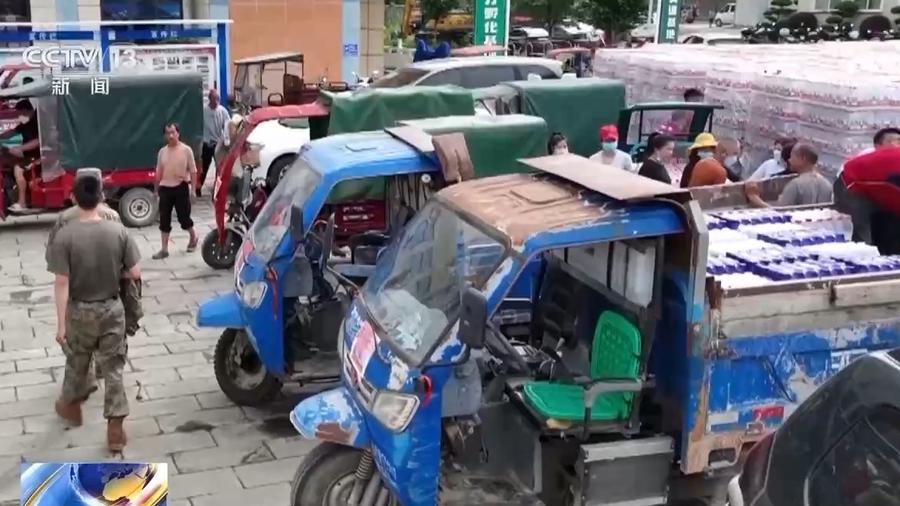 目前县城内的各条道路仍在进行清淤和垃圾清运,主要供大型车辆使用。去一些临时物资发放点,中间需要穿过窄巷,因此三宝侗寨足球队的党员们,召集片区内的村民组建了送物资的“三轮车队”。