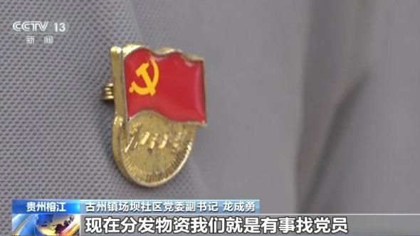 古州镇场坝社区党委副书记 龙成勇:我们都戴着党员徽章,这样居民特别容易找到我们,来反映一些事情,解决一些事情。现在分发物资,我们就是有事找党员。