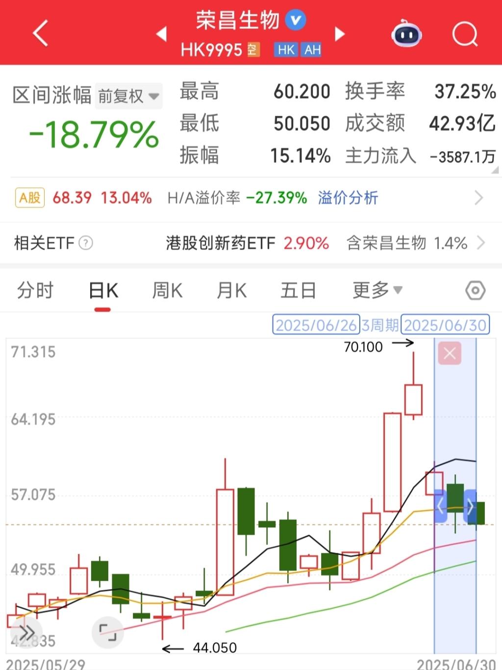 这种反差在荣昌生物近期的市场表现中尤为突出。今年上半年,创新药板块整体走强,荣昌生物A股和H股分别录得100.93%和278.13%的显著涨幅。但花旗认为,其H股近期上涨主要源于市场“过度乐观的预期”。