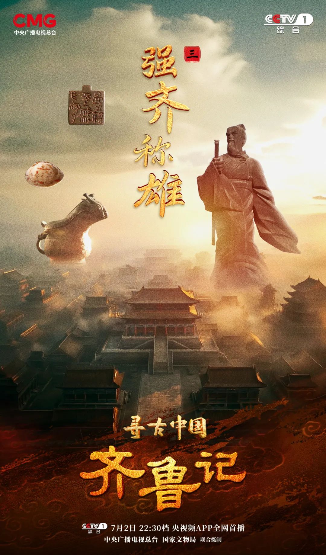 7月2日,总台央视综合频道(CCTV-1)22:30档,《寻古中国·齐鲁记》第三集《强齐称雄》,与你一起探寻齐国如何实现富国强兵,成为春秋五霸之首, 以及何以成为百家争鸣之地。