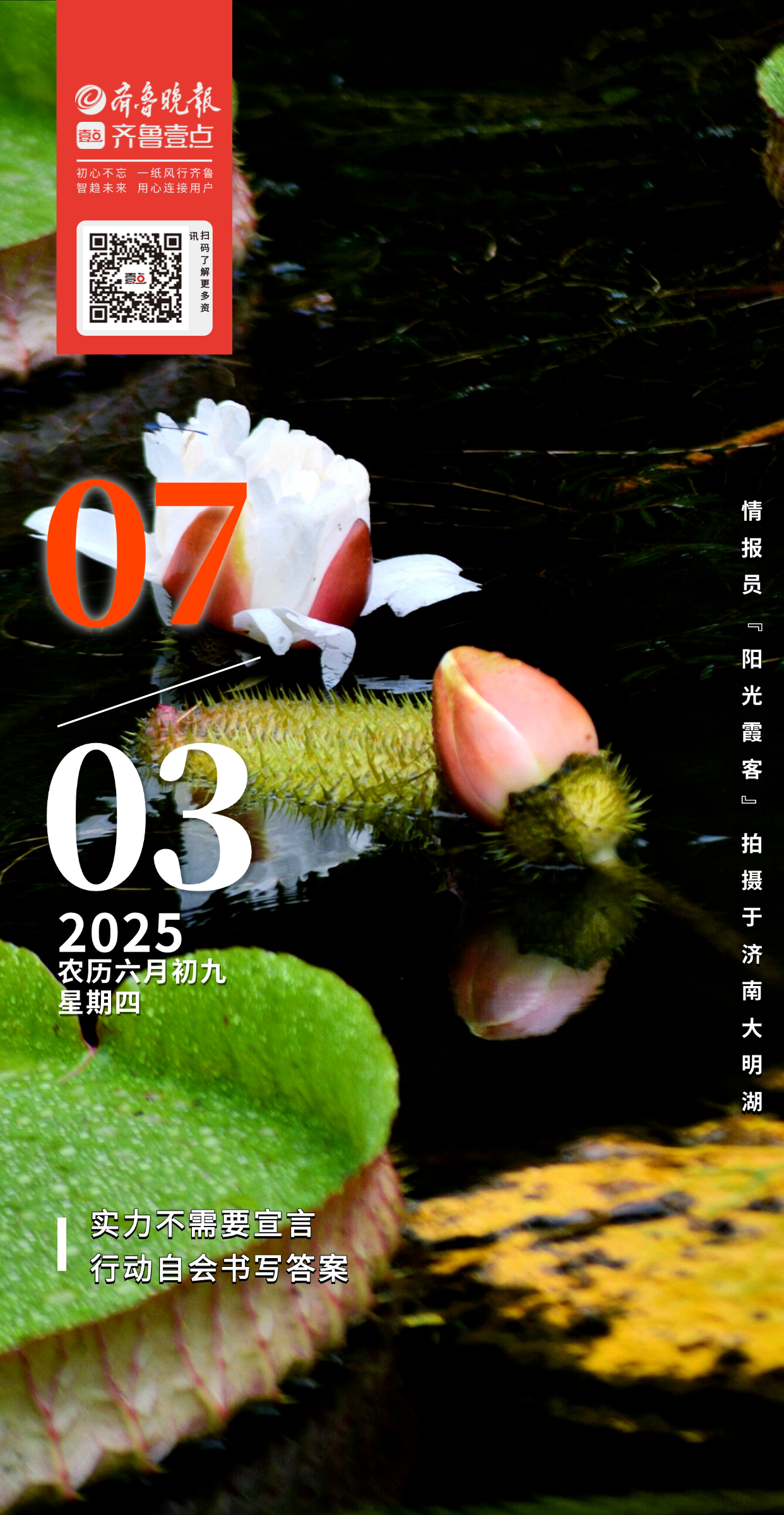 雨后的济南大明湖王莲池诗意满眸,睡莲和王莲娇艳美丽,豆娘翩翩起舞,落花添彩。一池双生,别有韵味,王莲初绽洁白如雪,睡莲婉约安静端庄。雨后露珠,洒落在叶片之上,宛如一颗颗晶莹的珍珠,勾勒出一幅夏日唯美画卷。