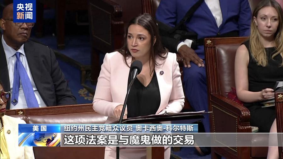 纽约州民主党籍众议员 奥卡西奥-科尔特斯:这项法案是与魔鬼做的交易,它使我们国家的债务爆炸式增长,它让我们整个经济军事化,还剥夺了美国人民的医疗保健和基本尊严。为了什么?让亿万富翁们贪婪地窃取我们的国家。我们无法容忍,我们不会支持这项法案。你们支持法案的人该为之羞愧。