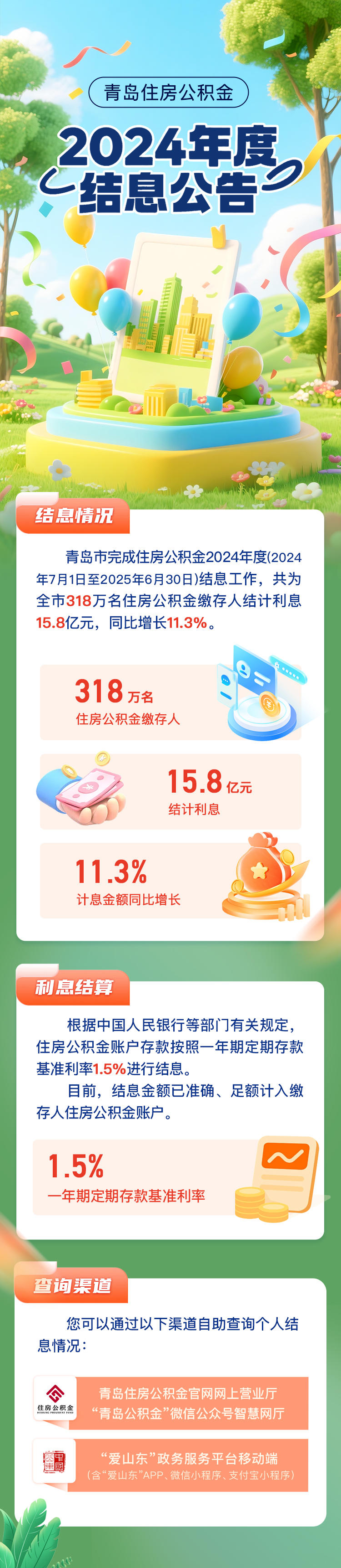 结计利息15.8亿元!青岛完成住房公积金2024年度结息