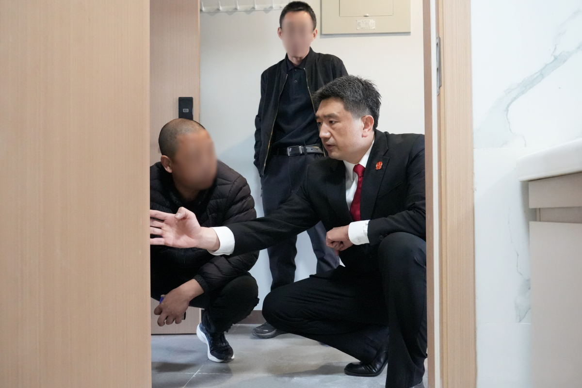 “这个防水涂层厚度明显不足”“墙皮脱落严重”“瓷砖空鼓率超过合同约定标准”……在装修现场,孟宁手持激光测距仪和空鼓锤,对6处存在“质量问题”的地方进行逐一勘查,并对照合同条款逐项核验。调解员同步记录争议点,用执法记录仪固定关键证据。