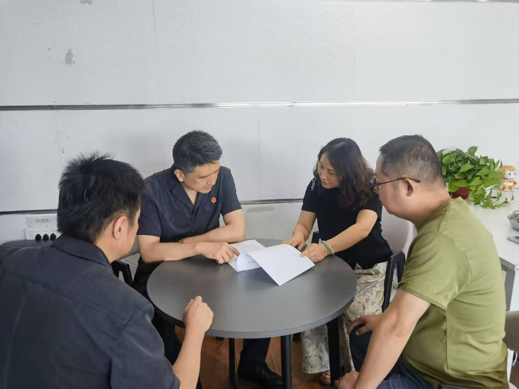 勘查结束后,孟宁将巡回法庭搬进装修现场。“企业信誉是无形资产,及时整改才能赢得市场口碑。”面对原告公司代表,孟宁展示着检测数据。“如果启动司法鉴定,企业至少要停工三个月。”转向被告公司负责人时,孟宁调出同类案件审理周期示意图。调解员适时递上预先拟定的和解方案,双方当事人在装修现场展开激烈讨论。