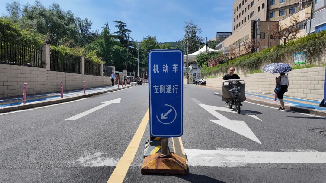 7月4日,济南交警市中区大队交通科民警宁开亮介绍,面对部分市民对左侧行驶规则的不适应,济南交警持续优化升级。该路段导流线由白虚线改为了更醒目的黄虚线;地面提醒新增清晰提示文字;立体引导增设多组引导标志;还与百度、高德等地图平台实时对接,实现导航精准指引,全方位帮助驾驶员快速适应,避免意外发生。