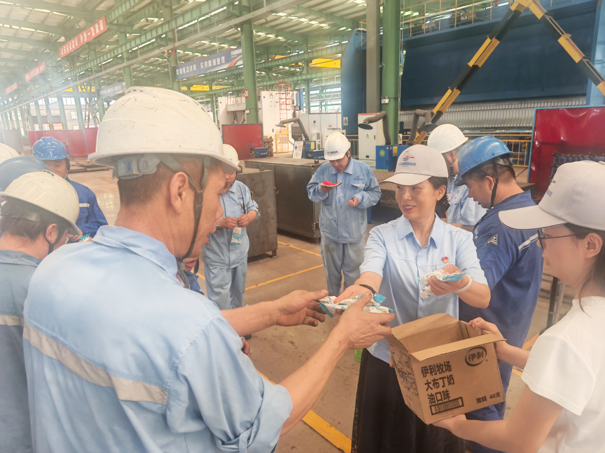 7月4日,融汇物产工会走进智慧新钢车间开展“夏日送清凉”活动,为坚守岗位的一线职工送上防暑物资与深切关怀,助力清凉度夏、安全生产。