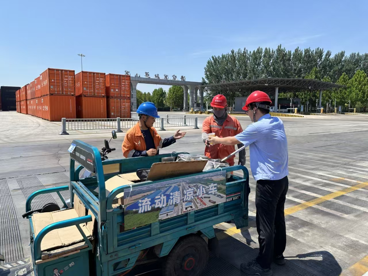 梁山港在常态化送清凉活动下,结合园区实际,增设流动清凉小车,装载绿豆水、雪糕、饮料等清凉物资,招手即停循环式开展送清凉工作,日均流动5小时。