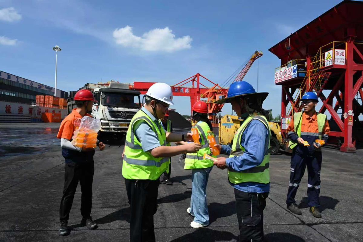 太平港工会工作人员来到码头装卸现场、堆场等一线作业区域开展送清凉活动。